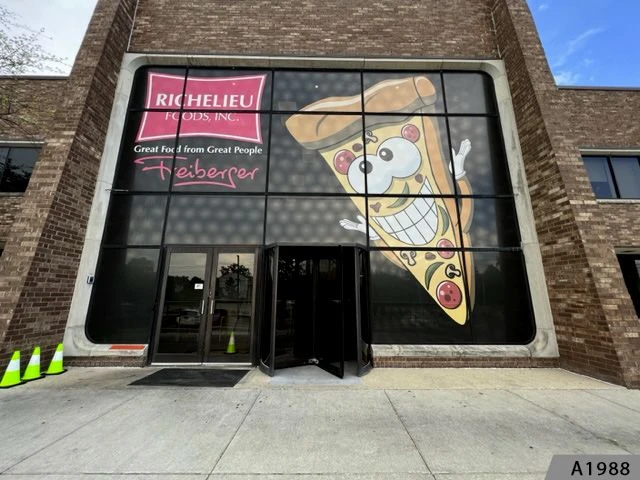 Perforated Window Film can also be used on windows with company logos & photos.