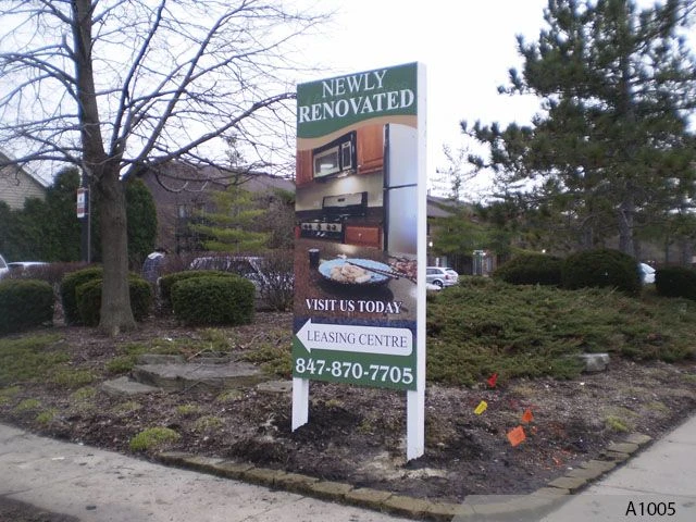 Most panels on these signs are printed on two sides for excellent visibility to passersby from both directions. Some people even add illumination to enhance visibility at dawn, dusk and nighttime. We can also custom design your post and panel signage with your name, logo, colors and any other information you want to include.