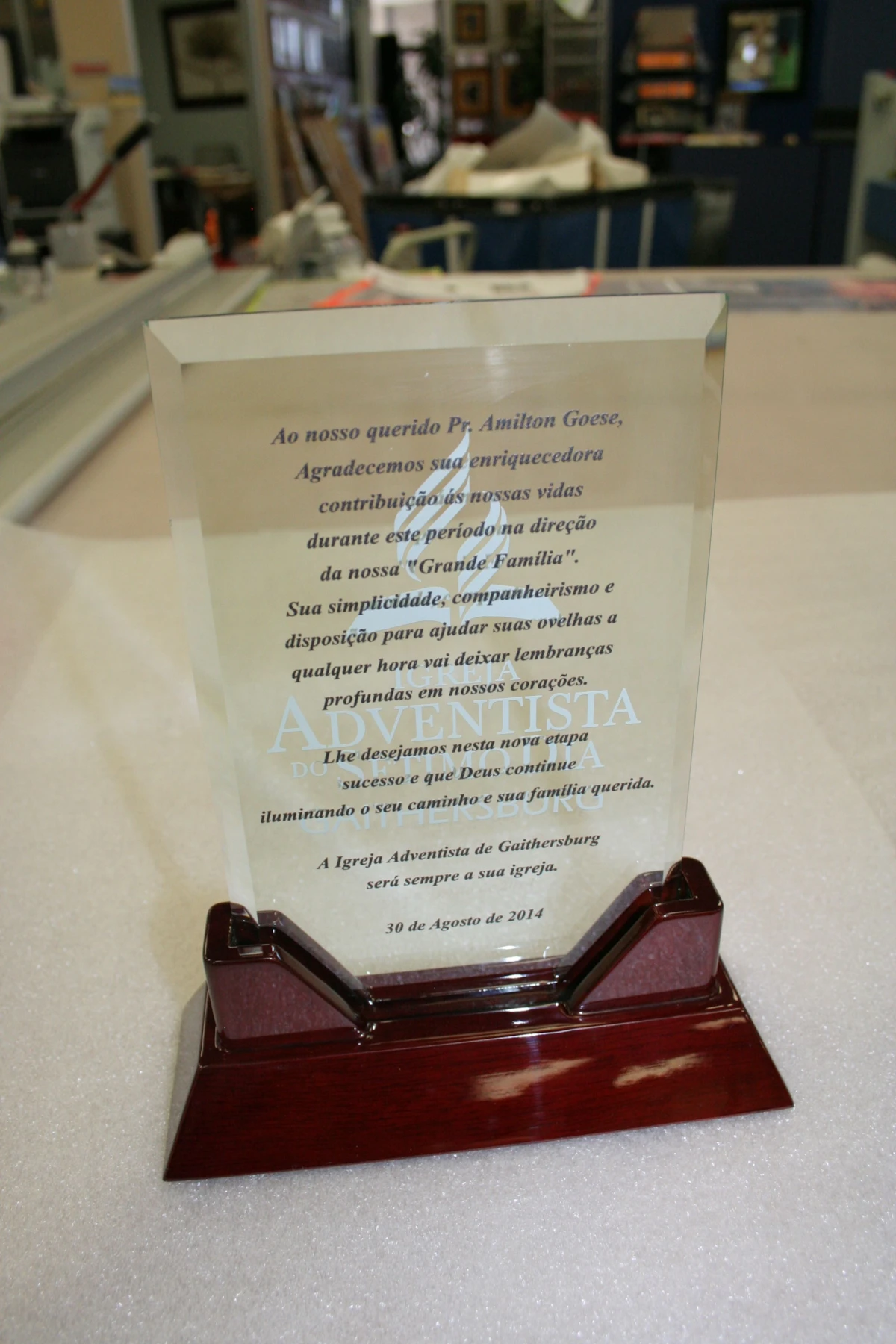 Recognition is the greatest form of flattery, and a personalized reward from Signs By Tomorrow will make anyone feel special. We specialize in making custom printed and engraved acrylic awards, however we also have the capabilities to make routed wooden stands and engraved metal plates with any number of other custom materials. Our custom acrylics can be achieve any level of detail and personalization, transformed into memorials with etched or engraved photography. Custom logos and artwork can also be replicated onto our acrylic awards at no extra cost!